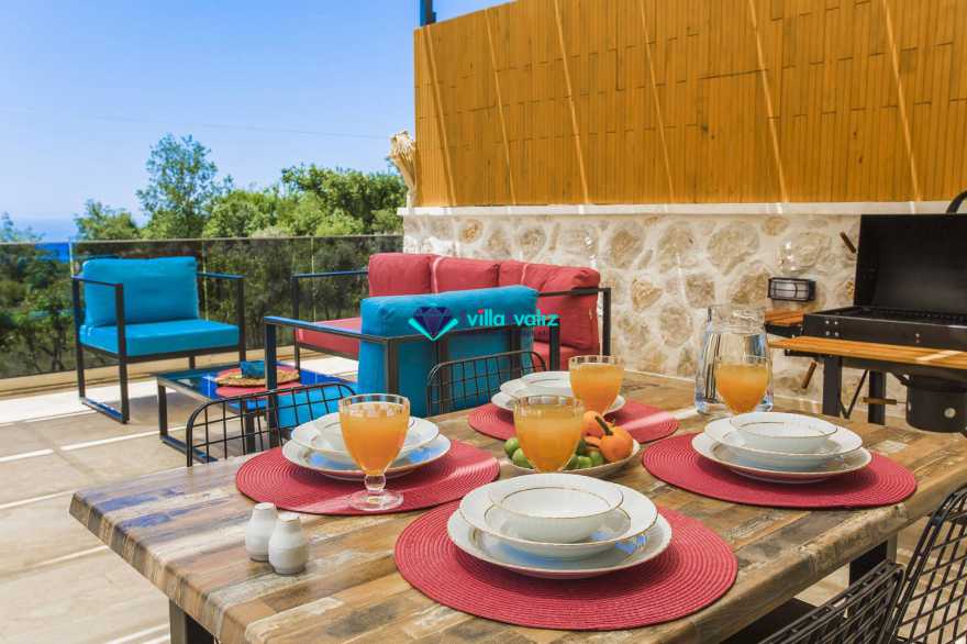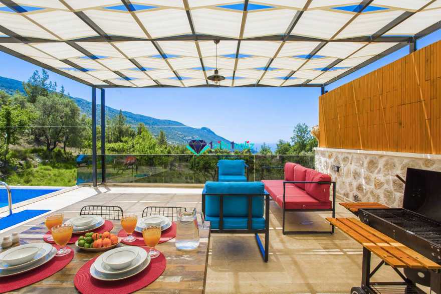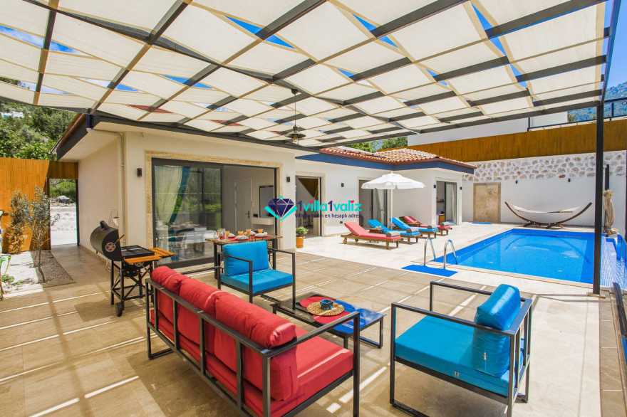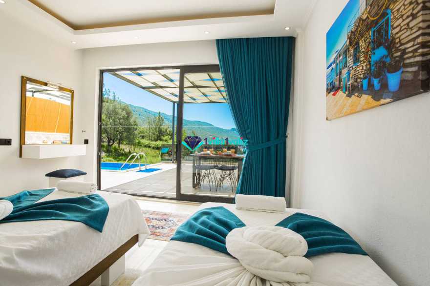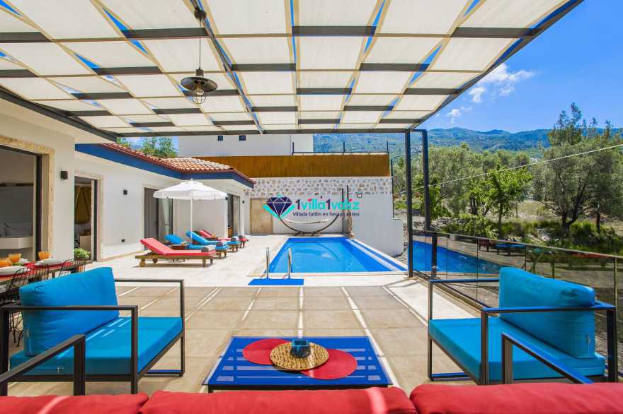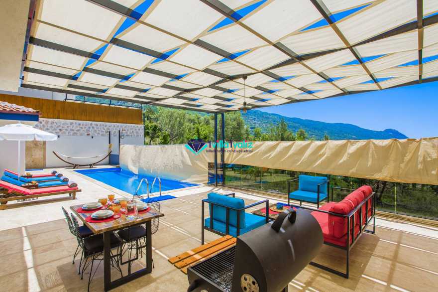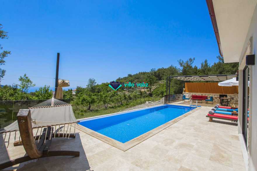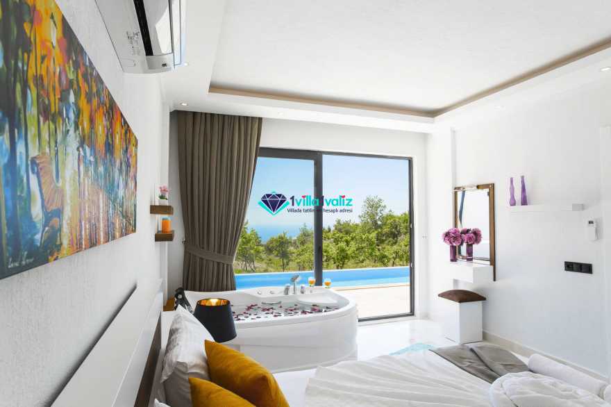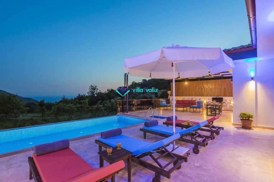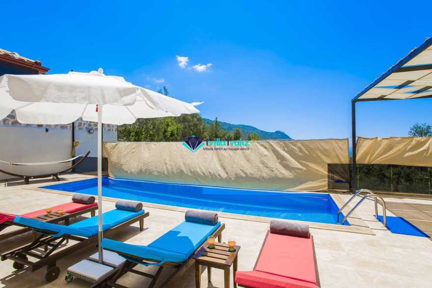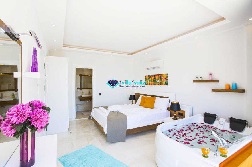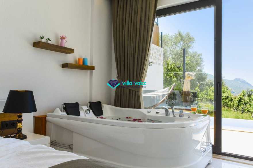 Kalkan’ın İslamlar bölgesinde konumlanmıştır. Eşsiz doğa manzarası ile iç içe tasarlanmış muhafazakar villamız 2 yatak odalı, 4 kişilik kapasiteye sahiptir. Muhteşem doğası, enfes manzarası ve geniş bahçesiyle sizlerin rahatlığını ön planda tuttuğumuz geniş villamız özenle seçilmiş eşyalarla donatılmış, her şey eksiksiz olarak yerine getirilmiştir. Kalkan’ın şüphesiz en güzel bölgesinde konumlanan villamız özenle dizayn edilmiş olup havuz ve havuz terası korunaklıdır ve dışarıdan görünmemektedir. Hem balayı çiftlerimizin hem de çekirdek ailelerin tercih edebileceği, çocuklar için de uygun olan villamız sizlere uygun bir seçenektir. Süit yatak odasında bulunan jakuzi ile tatilinizi daha da keyifli hale getirebilirsiniz. Villa Şila’yı tercih etmeniz durumunda huzurlu ve mutlu bir şekilde tatilinizi geçirmeniz için elimizden geleni yaptık ve her şeyi eksiksiz tasarladık. Villamız Kalkan merkeze araç ile 15 dakika mesafe uzaklığında bulunmaktadır.