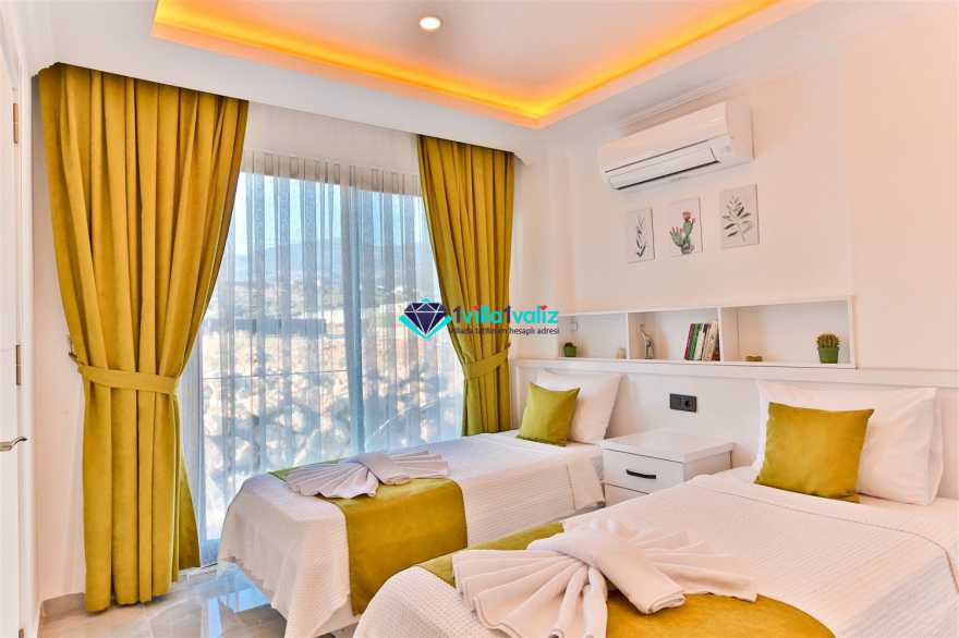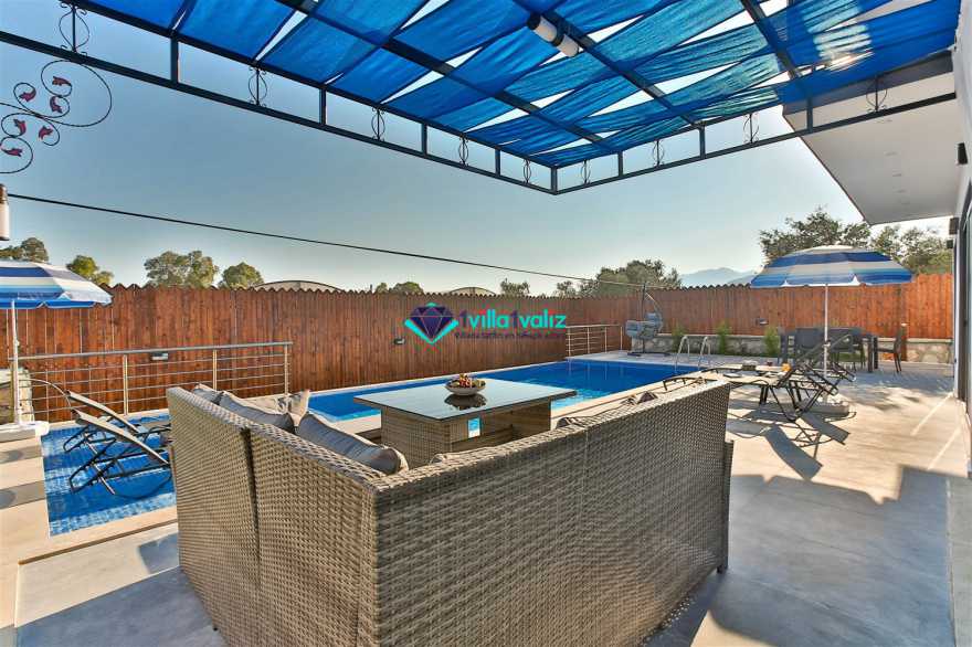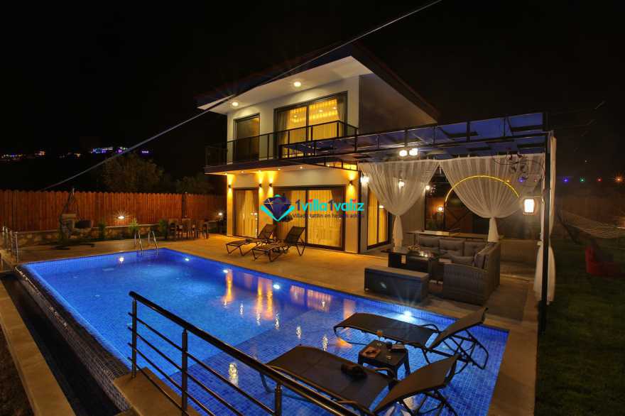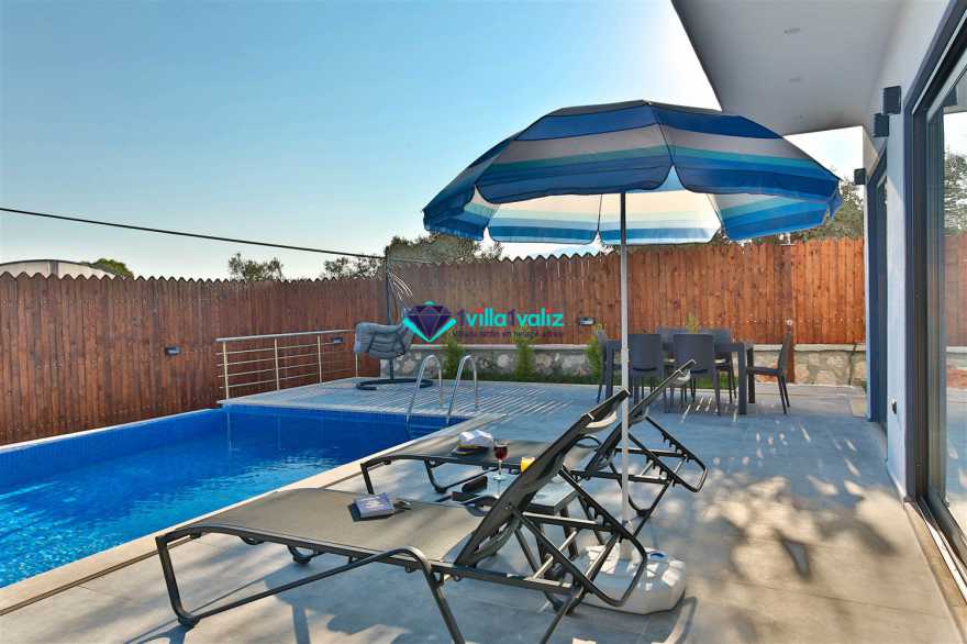 Kalkan Kınık mevkiisinde konumlanmış kiralık balayı villası, villamız eşsiz tasarımı ile huzurlu ve konforlu bir tatil isteyen konuklarımız için en ideal seçeneklerden bir tanesidir. Geniş bahçe alanı, masa tenisi gibi aktiviteler ile vakitin nasıl geçtiğini anlayamayacaksınız diyebiliriz. Villamız muhafazakar villalar ve balayı villaları kategorisinde yer almaktatıdir. 2 yatak odası ile 4 kişiye kadar konaklama imkanını sizlere sunmaktadır. Ebeveyn odasındaki iki kişilik jakuzisi de misafirlerimize ekstra rahatlama imkanı sunuyor. Havuzu korunaklı (Havuzun dışarıdan gözükmediği anlamına gelir) özelliği ile mahremiyete önem veren misafirlerimiz için geniş bir bahçede tatil imkanı sunmaktadır.