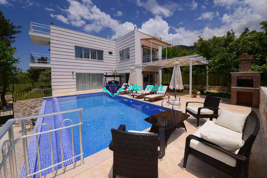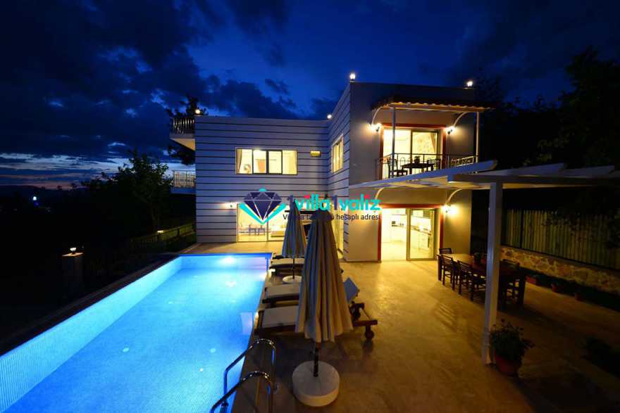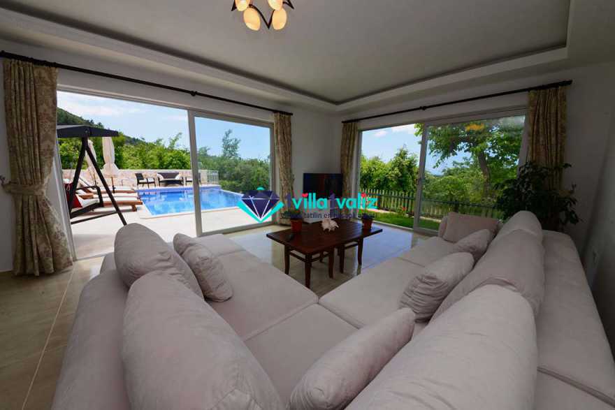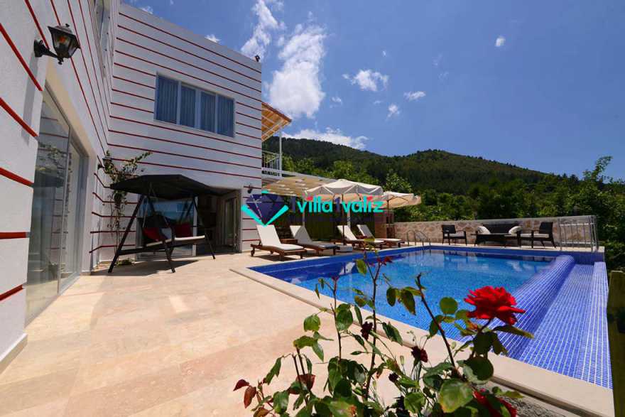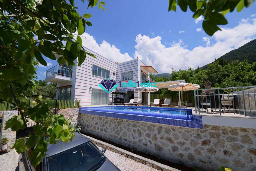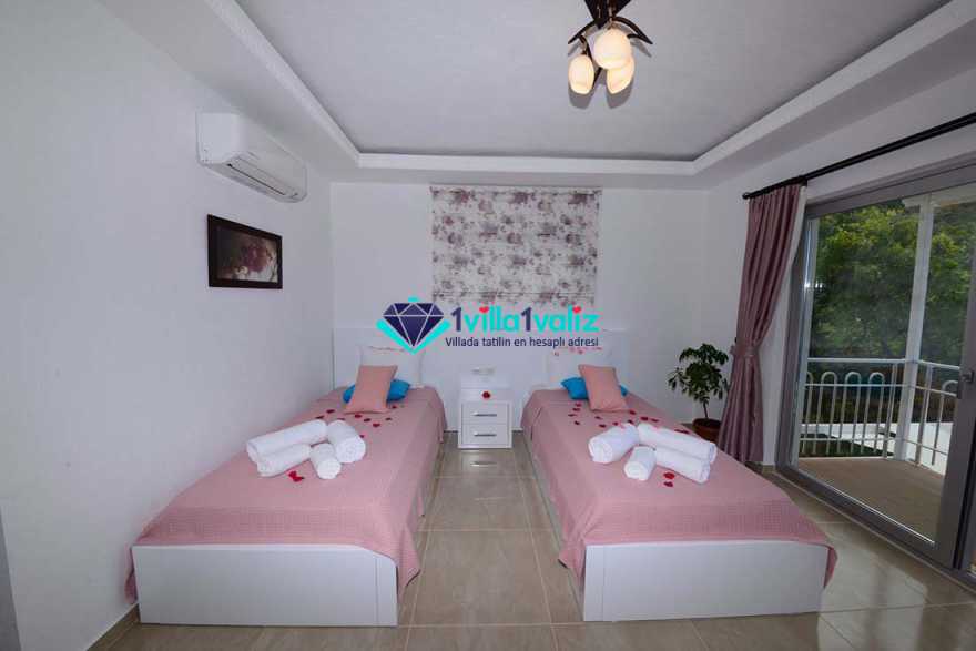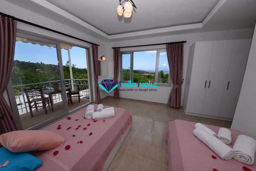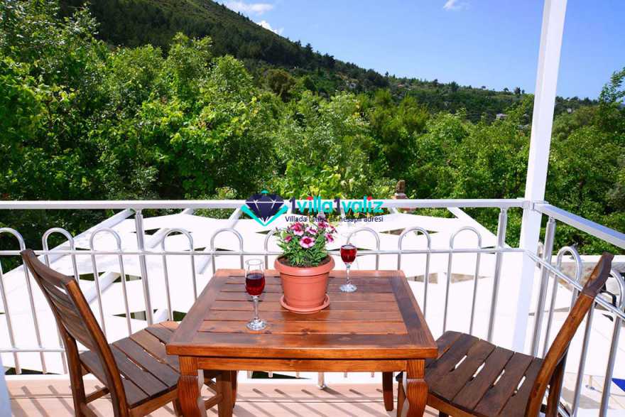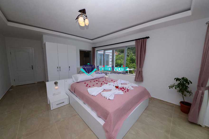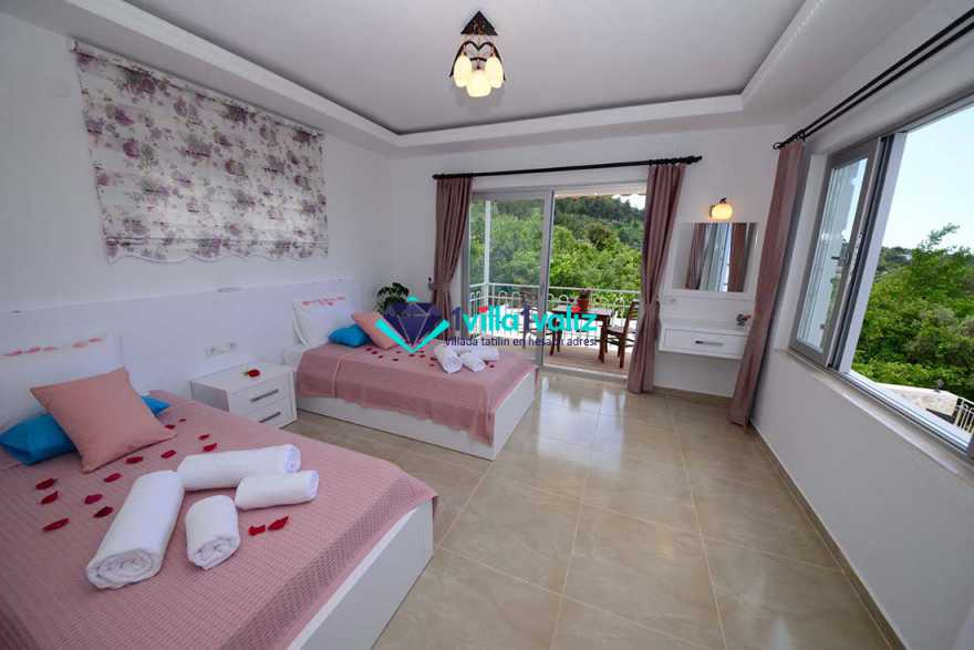 Kalkan Üzümlü köyünde bulunan korunaklı özel havuzlu 2 yatak odalı 4 kişilik Villa Buğra, geniş arazi üzerine inşa edilmiş geniş bir bahçeye sahip muhafazakar aileler ve balayı çiftleri tarafından çokça tercih edilen villalarımızdandır. Etrafı yeşilliklerle çevrilmiş doğa içerisinde bulunan villa şehirden uzak doğa ile başbaşa tatil planlayan aileler için idealdir. Restoran ve market gibi yerlere yürüme mesafesindedir. Jakuzili ve ebeveyn banyoludur. Villanın odalarının balkonları deniz manzaralıdır.