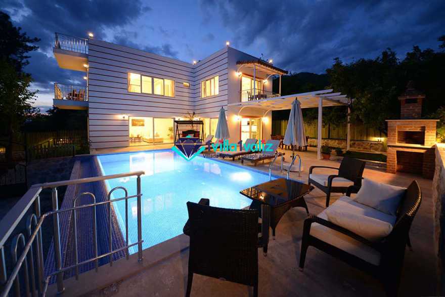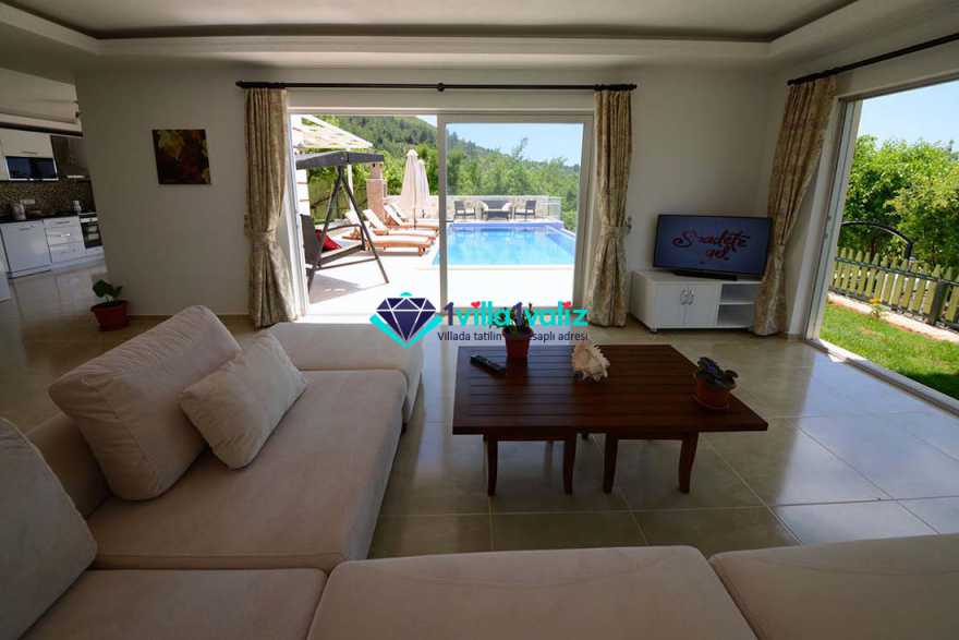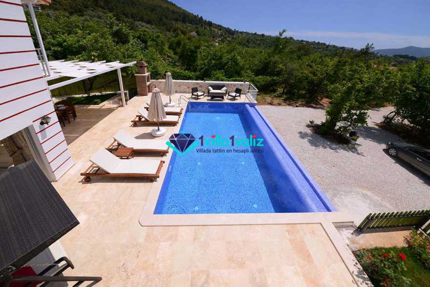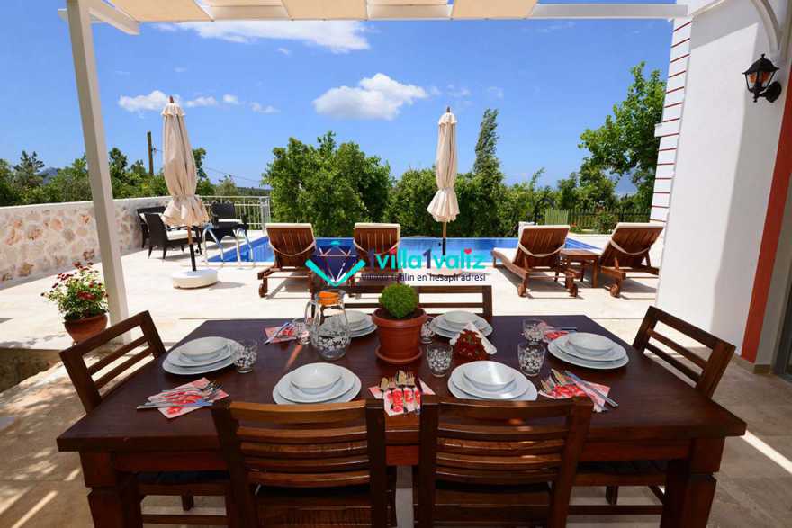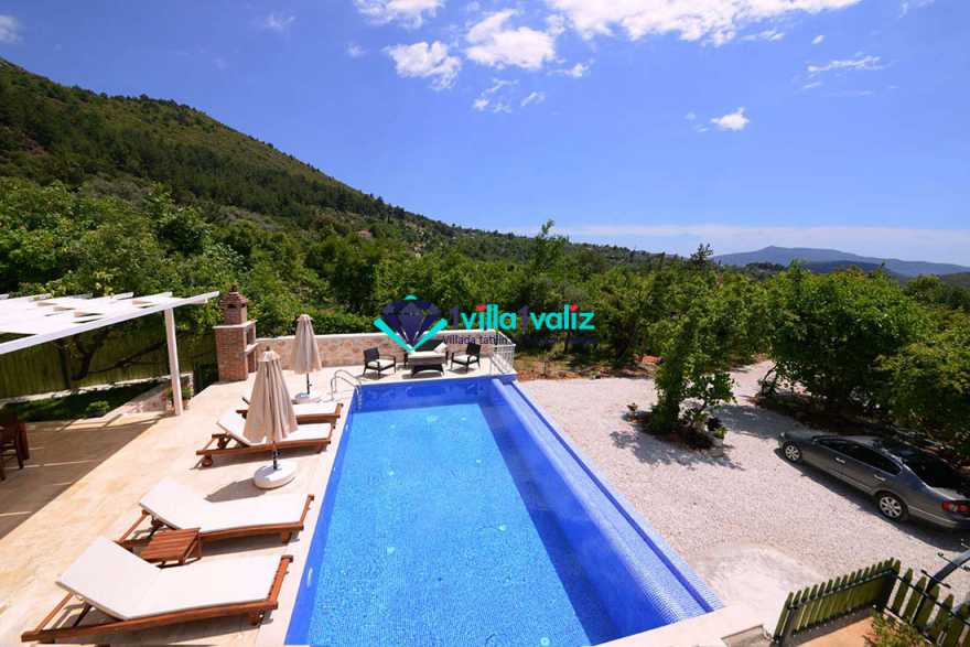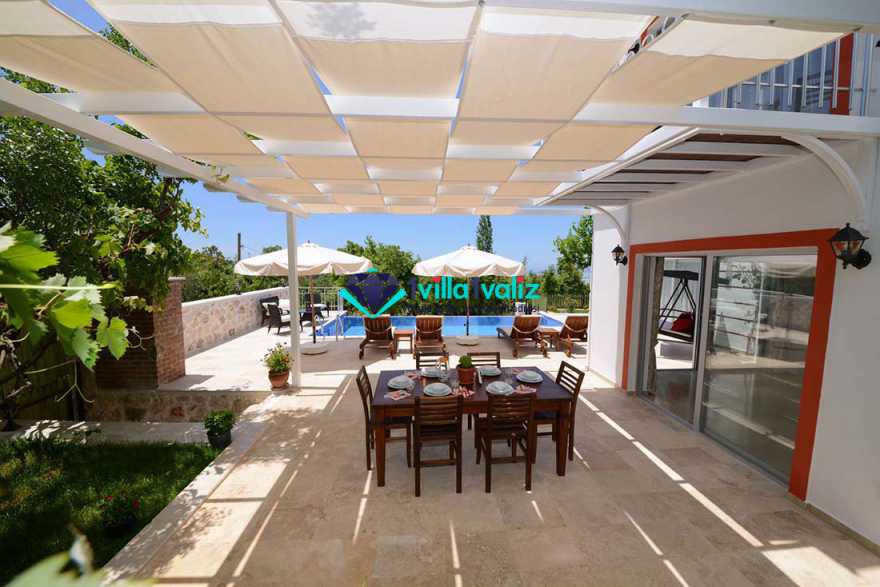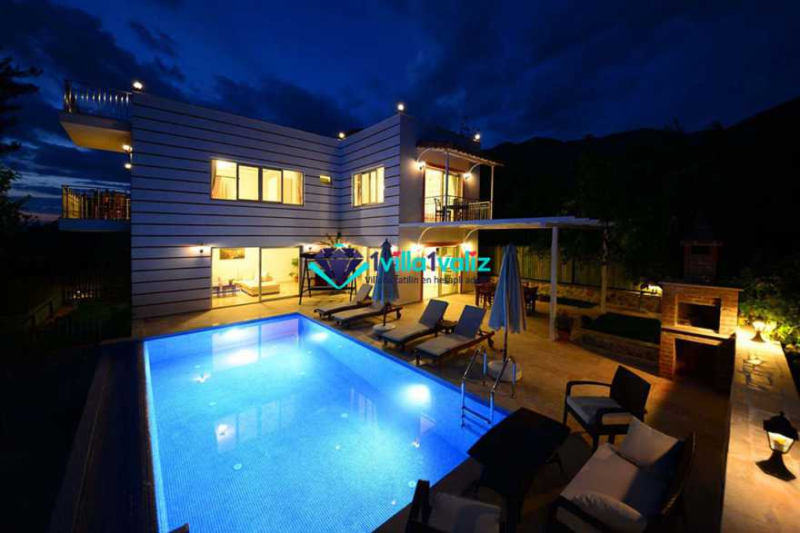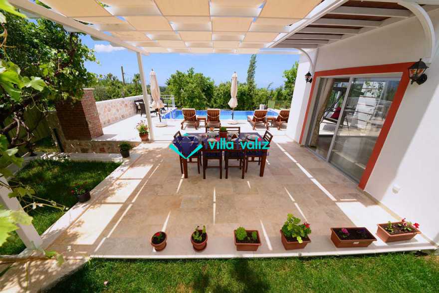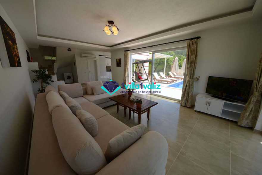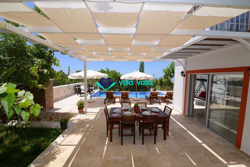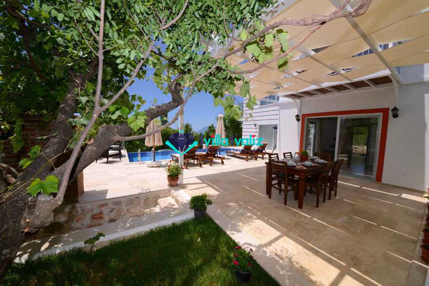 Kalkan Üzümlü köyünde bulunan korunaklı özel havuzlu 2 yatak odalı 4 kişilik Villa Buğra, geniş arazi üzerine inşa edilmiş geniş bir bahçeye sahip muhafazakar aileler ve balayı çiftleri tarafından çokça tercih edilen villalarımızdandır. Etrafı yeşilliklerle çevrilmiş doğa içerisinde bulunan villa şehirden uzak doğa ile başbaşa tatil planlayan aileler için idealdir. Restoran ve market gibi yerlere yürüme mesafesindedir. Jakuzili ve ebeveyn banyoludur. Villanın odalarının balkonları deniz manzaralıdır.