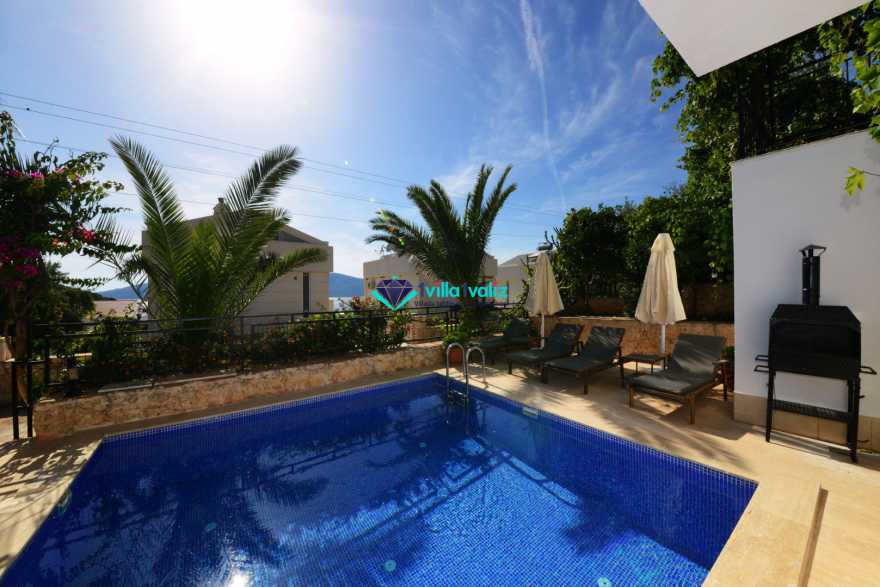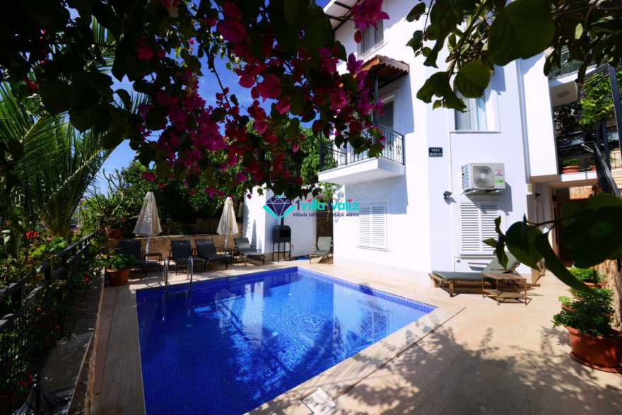 Kalkan/Kışla mevkisinde bulunan kiralık muhafazakar villa Mercan, dışarıdan görünmeyen özel havuza ve şirin bir bahçeye sahiptir. Villa Mercan konumundan dolayı denize ve markete oldukça yakındır. 4 adet yatak odası ile 9 kişilik kapasiteye sahip Mercan deniz manzaralı kiralık villamızda, aileniz ile rahat hareket edebilir, gözlerden uzak, huzurlu bir tatil geçirebilirsiniz. Konaklamanız esnasında ihtiyacınız olacak bütün detaylar düşünülmüş olup, hayalınızdeki tatili geçirmeniz için sizlere sunulmaktadır. Kiralık Villa Mercan sizlere hayalinizdeki tatili sunar.