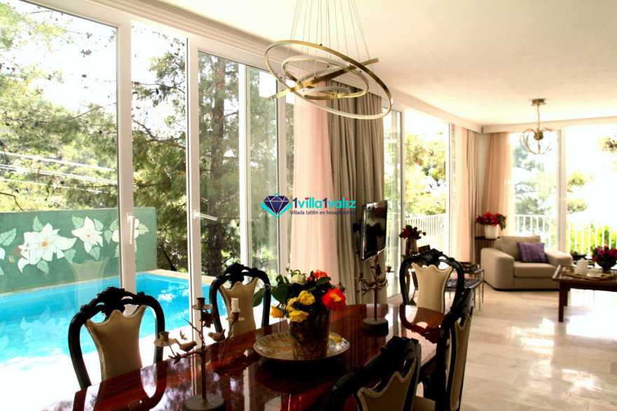 Havuzu korunaklı, jakuzili, doğa içerisinde, 2 yatak odalı